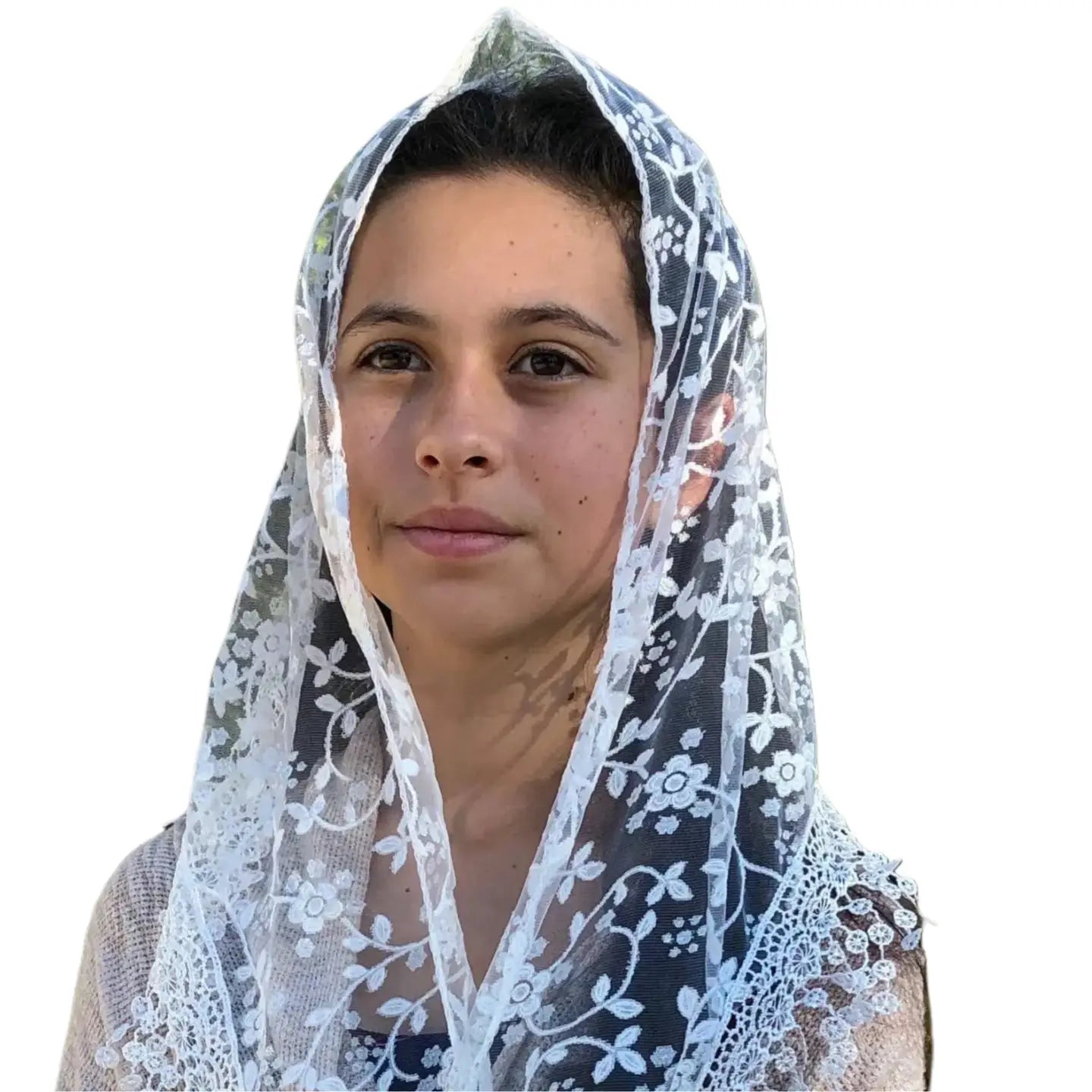 Cherry Blossom is one of our most popular Church Veils, perfect for all ages and a good starter for anyone, made with soft WHITE material and matching color lace around the edge.