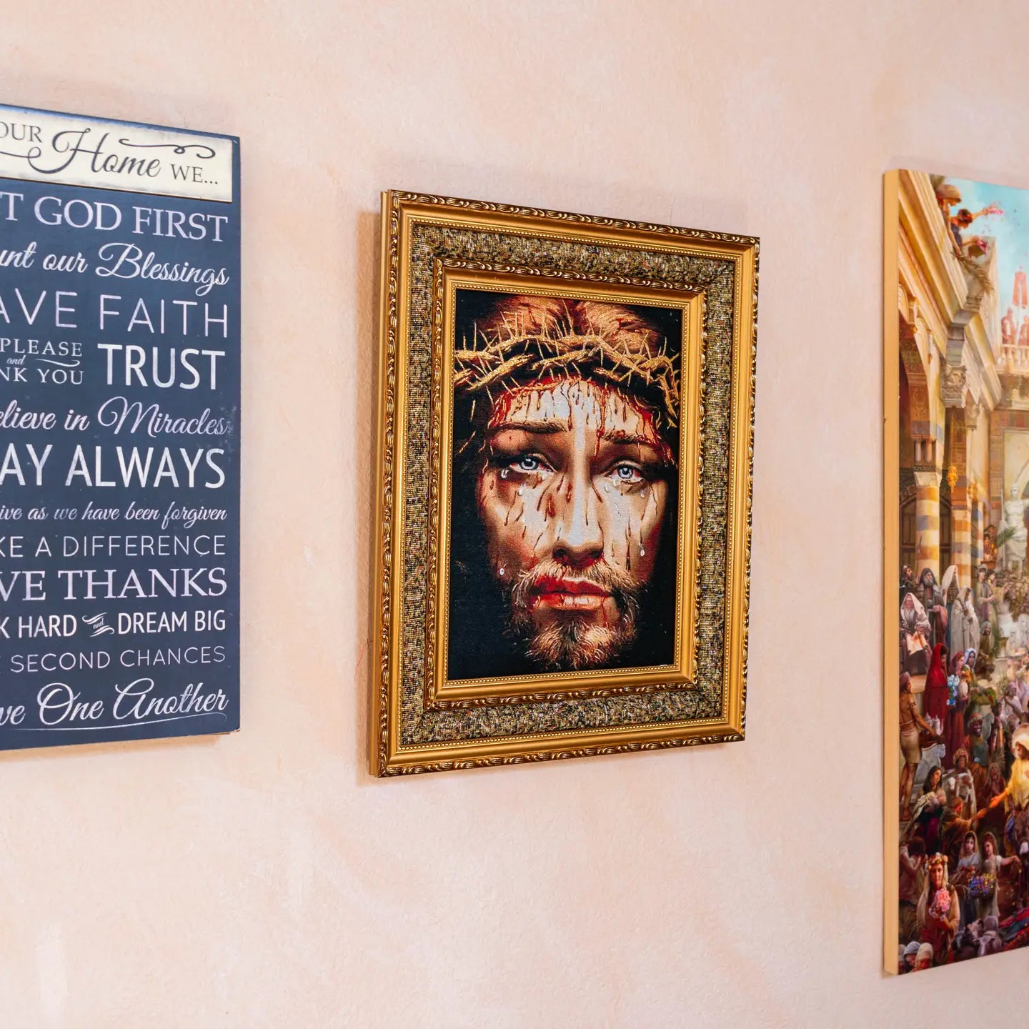 Vivid color thread goes into making this fine looking image of Jesus' Precious Blood